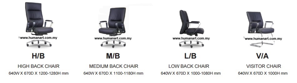 PRESS MB (Belakang Sederhana) | 640×700×1100−1180 | Pengurus, Staf Kanan | Sokongan yang sangat baik tanpa sandaran leher, gaya pejabat yang serba boleh. |