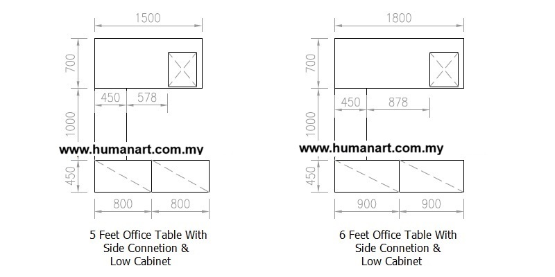 - Sambungan sisi meja: 1000W x 450D x 750H mm
