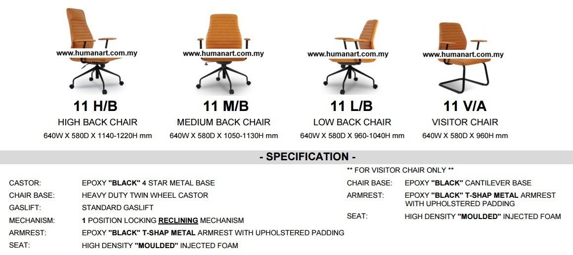 | CLASSICOR 11 HB | 640W X 580D X 1140-1220H mm | Executive, CEO |